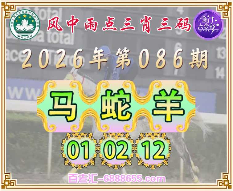 086期: 🥖『风中雨点』 🥖三肖三码🥖【马蛇】【01.02.12】开:羊12