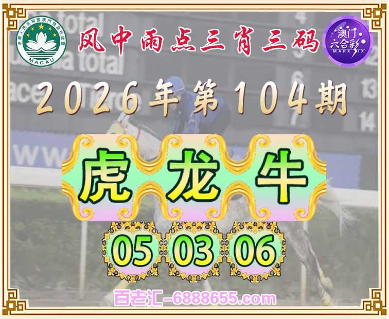104期: 🥖『风中雨点』 🥖三肖三码🥖【虎龙牛】【05.03.06】开:马01