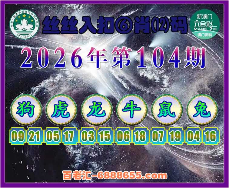 104期:【丝丝入扣】 💄⑥肖⑿码💄【狗虎龙牛鼠兔】开:马01