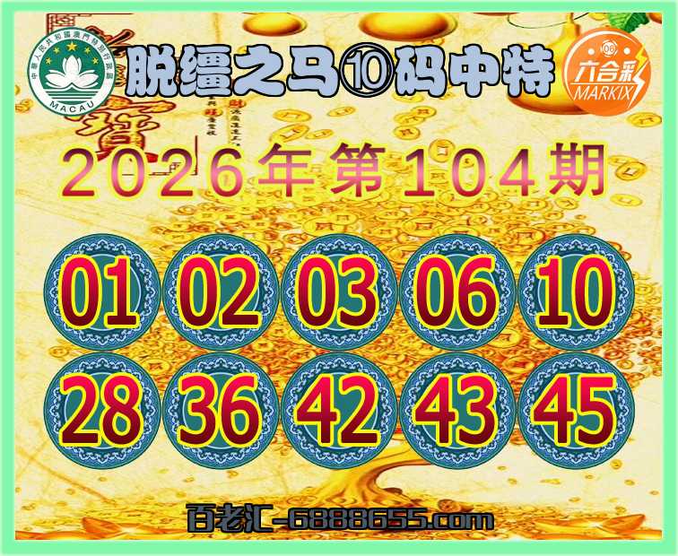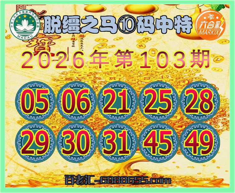 103期:【脱缰之马】 🥠⑩码中特🥠开:06