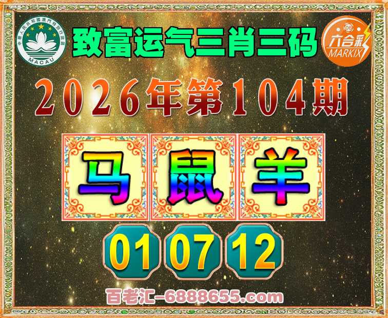 104期:《致富运气》 🏄‍♀️三肖三码🏄‍♀️【鼠羊】【01.07.12】开:马01