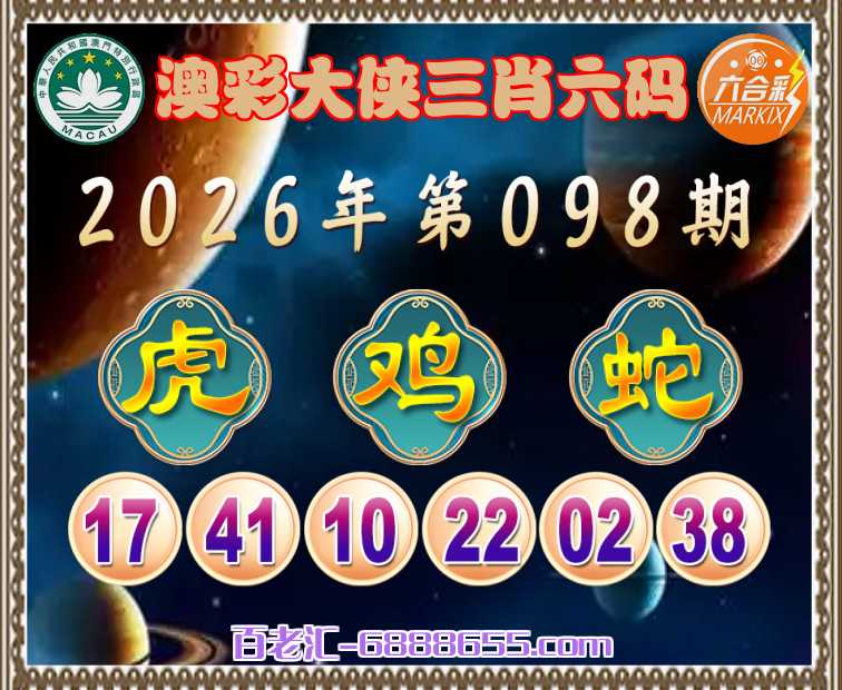 098期: 🤩《澳彩大侠》 🤩三肖六码🤩【鸡蛇】开:虎17