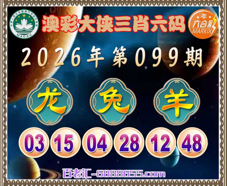 099期: 🤩《澳彩大侠》 🤩三肖六码🤩【龙兔】开:羊12