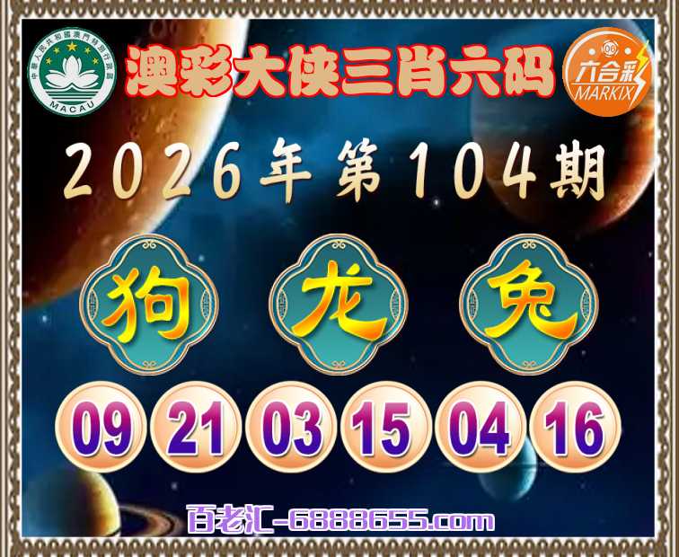 104期: 🤩《澳彩大侠》 🤩三肖六码🤩【狗龙兔】开:马01